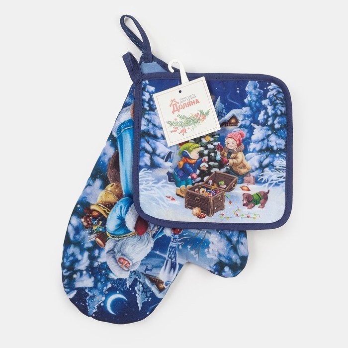 Набор кух. «Новогоднее настроение» варежка-прих.20х28см, прихватка 17×17 35% хл,65% п/э