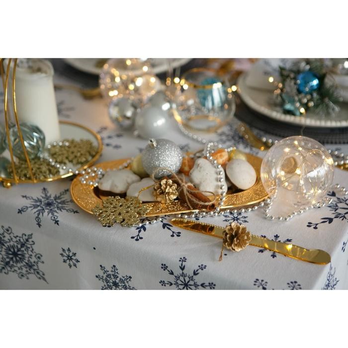 Скатерть Доляна «Новый год: Синие снежинки» 180×149 см, 100% хлопок, 164 г/м2