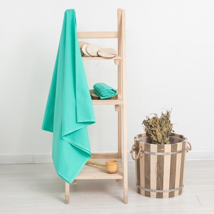 Полотенце вафельное банное Экономь и Я 80×150 см, цвет бирюзовый 100%хл, 200 гр/м2