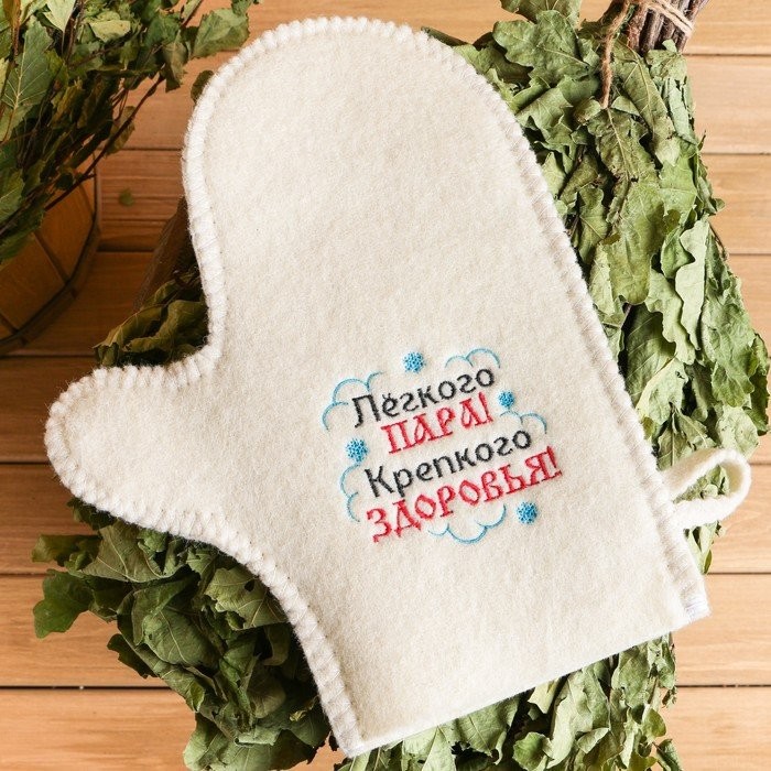 Рукавица для бани с вышивкой «Лёгкоро пара, крепкого здоровья!»