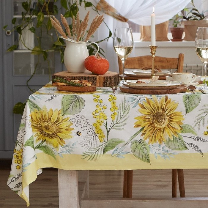Скатерть «Этель» Солнечные цветы 220×147 см, 100% хлопок, саржа 190 г/м2