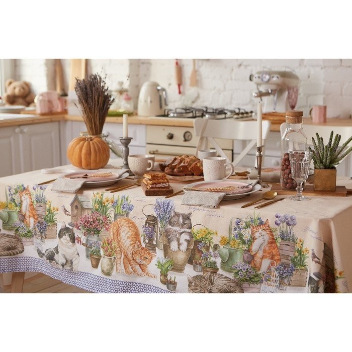 Скатерть «Этель» Уютные коты180×147 см, 100% хлопок, саржа 190 г/м2