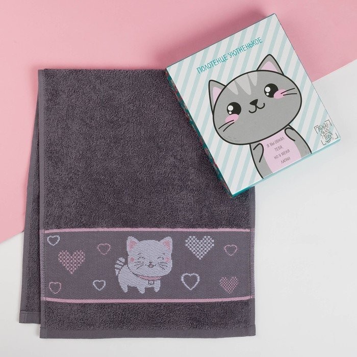 Полотенце махровое «Котик» 30×70 см 100% хлопок, 370гр/м2