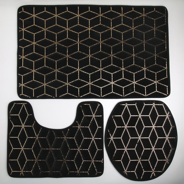 Набор ковриков для ванны и туалета Доляна «Геометрик», 3 шт: 35×40, 40×50, 50×80 см, цвет чёрный