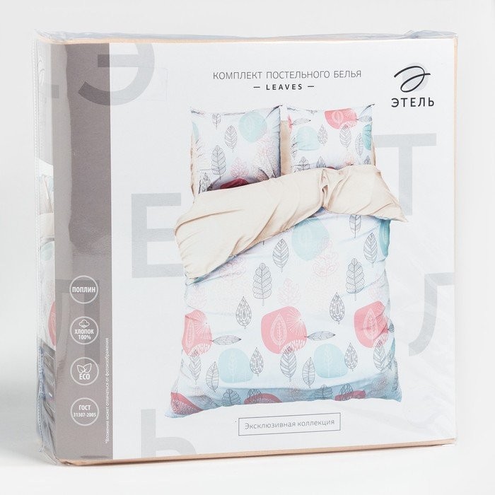 Постельное бельё «Этель» 1.5 сп Leaves 143*215 см,150*214 см, 70*70 см 2 шт