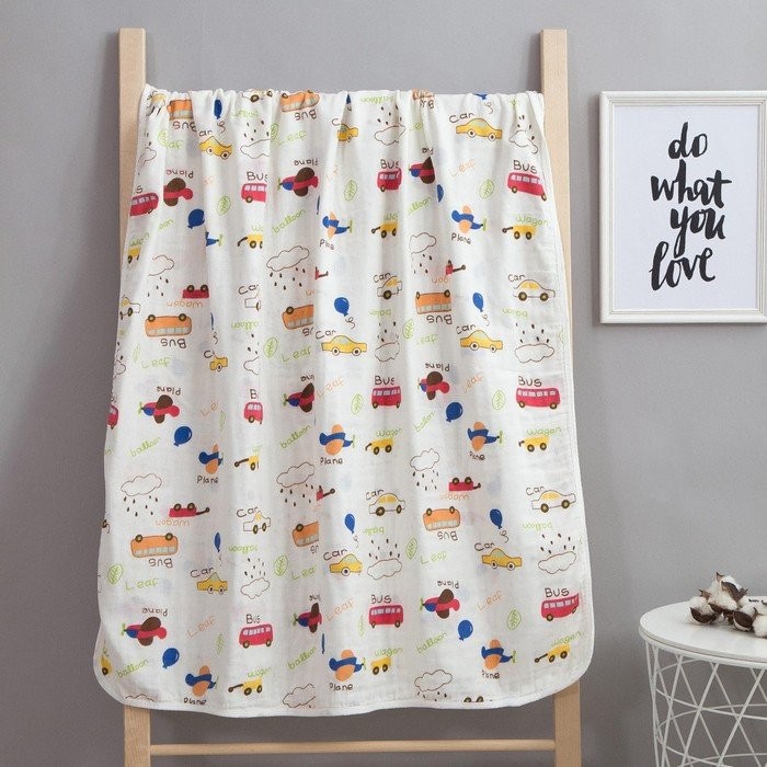 Одеяло лёгкое Крошка Я «Машинки» 90*90 см, муслин четырехслойный, 100% хлопок