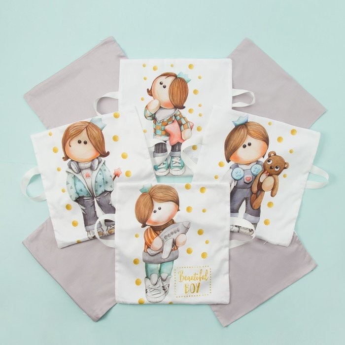 Набор наволочек Крошка Я «Принц Тим» цв. белый/серый 35*35 см-8 шт, сатин