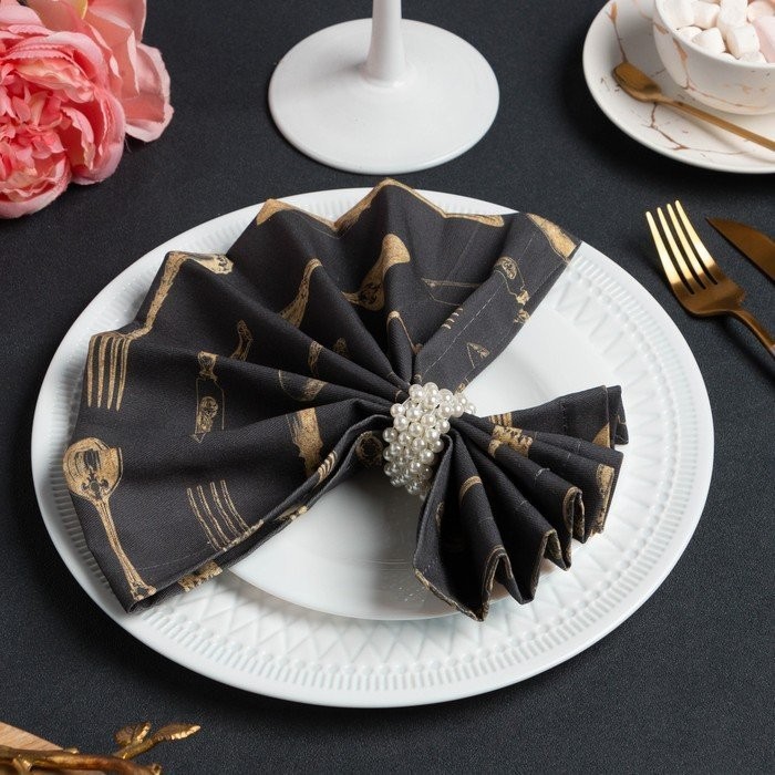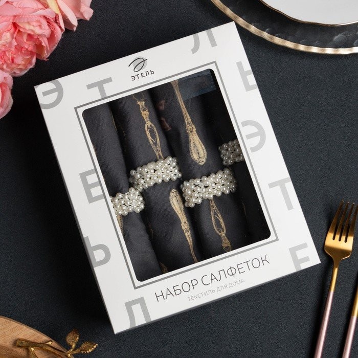 Набор салфеток с декорат. кольцами «Coutellerie» 46×46 см — 4 шт,100% хл, саржа 190гр/м2