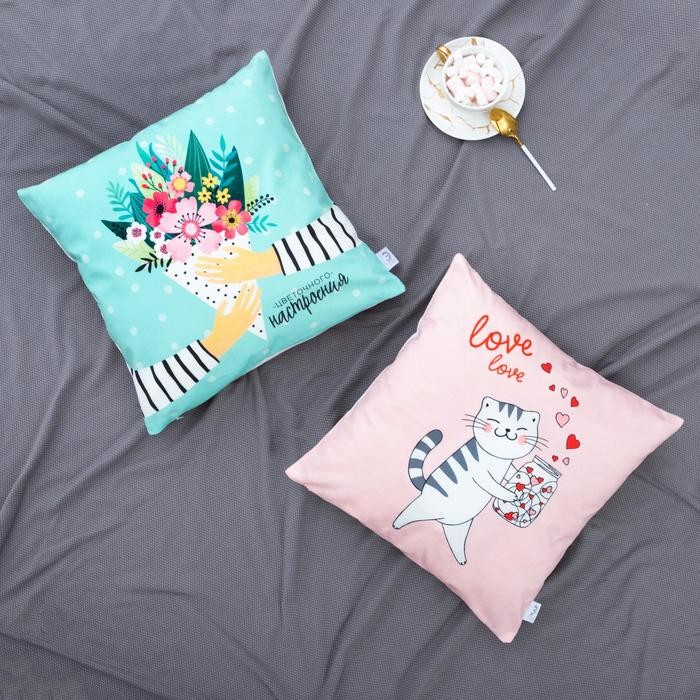 Наволочка Этель «Cats love» 40×40 см, 100% п/э, велюр