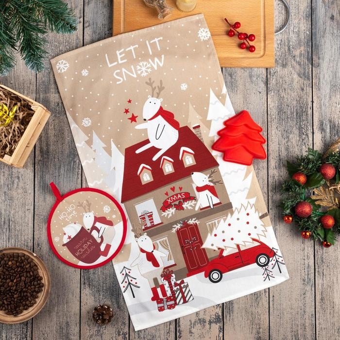 Набор подарочный Let it snow кухонное полотенце, прихватка, силиконовая форма