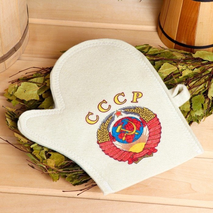 Набор для бани и сауны 5 в 1(сумка,шапка,варежка,коврик,мочалка),с принтом «СССР», белый