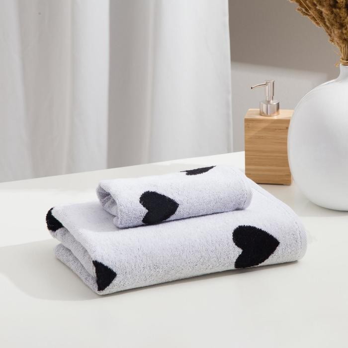 Полотенце махровое Этель ЧБ «Сердечки черные», пестроткань, 70×130 см