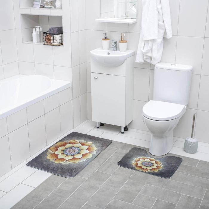 Набор ковриков для ванны и туалета Доляна «Аура», 2 шт: 50×80, 50×40 см