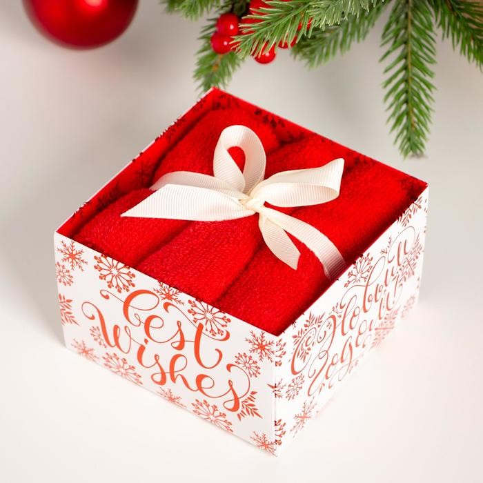 Набор махровых полотенец «С Новым годом» 30×30 см — 3 шт, хлопок 340гр/м2