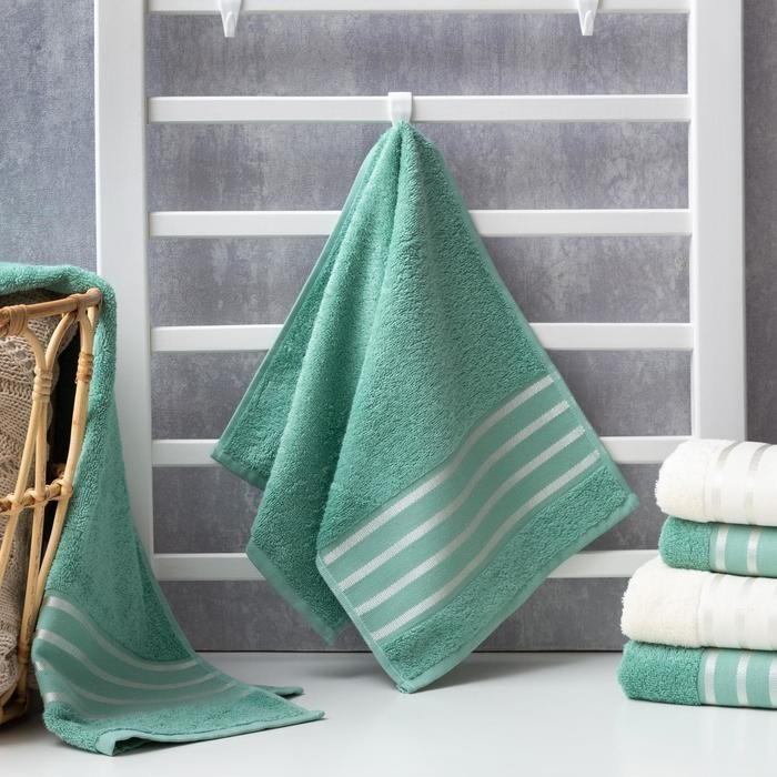 Полотенце махровое «Полоски» зелёное 30×70 см, 100% хл, 370гр/м2