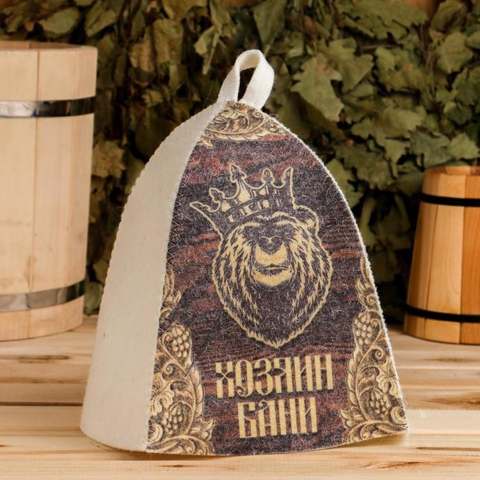 Шапка для бани «Классическая» с термопечатью «Хозяин бани (медведь)»