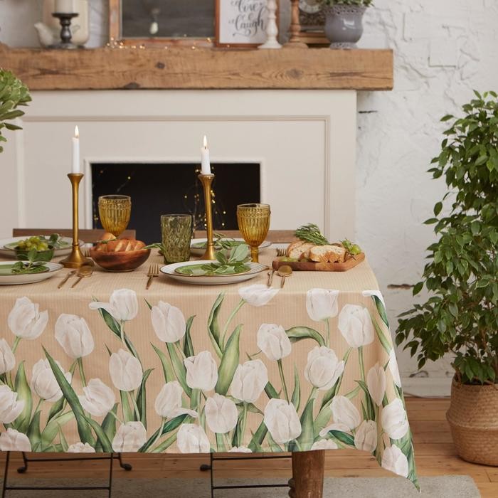 Скатерть «Этель» Белые тюльпаны 149х110см, 100% хл, саржа 190 г/м2