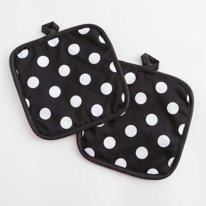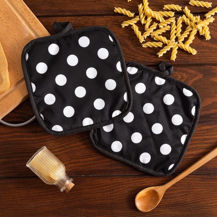 Кухонный набор Доляна «Горох» цв.черный, прихватка 17*17 см — 2 шт,100% п/э