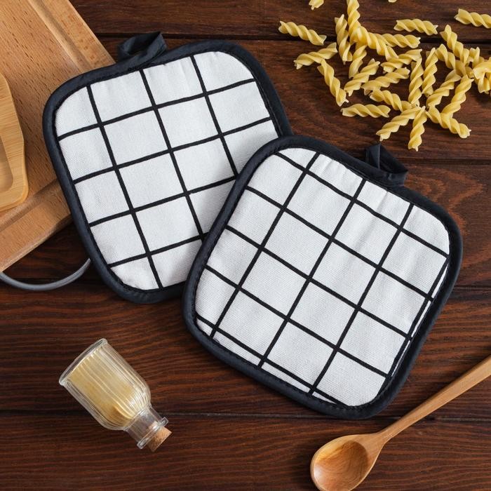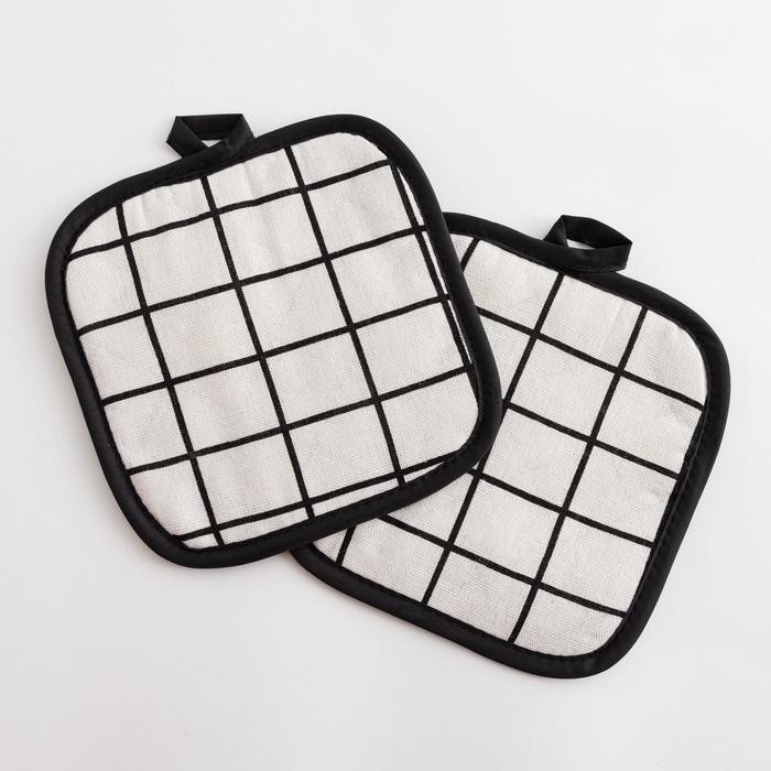 Кухонный набор (2 предмета) Доляна «Клетка», цвет белый, прихватка 17×17 см — 2 шт, 100% п/э