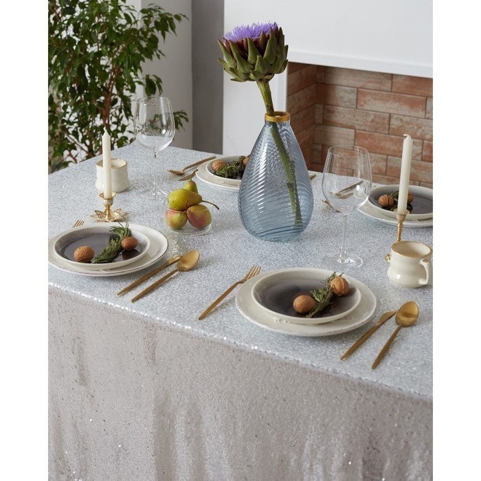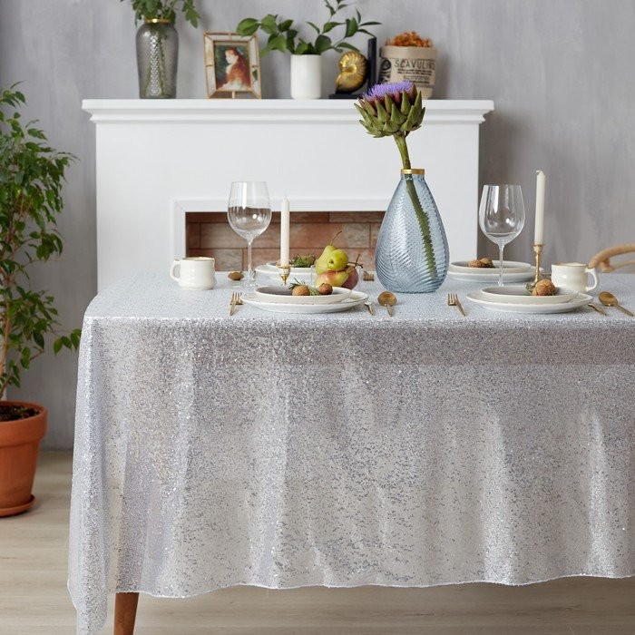 Скатерть с пайетками, цв.серебро, 280*280 см