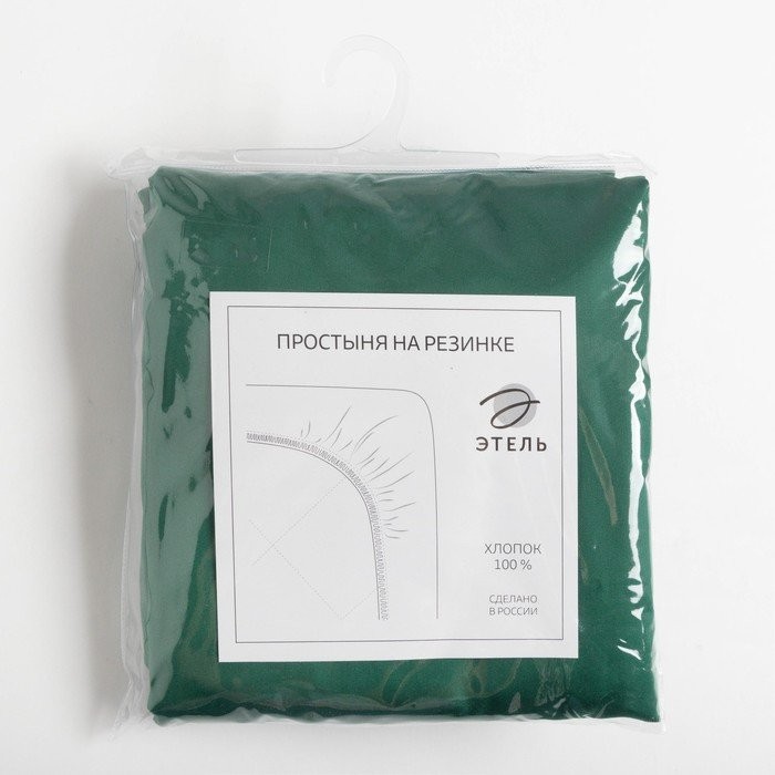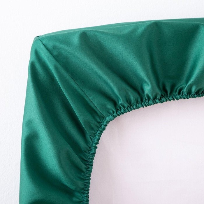 Простыня на резинке Этель 160*200*25 см, цв.изумрудный, 100% хлопок, мако-сатин, 125 г/м²