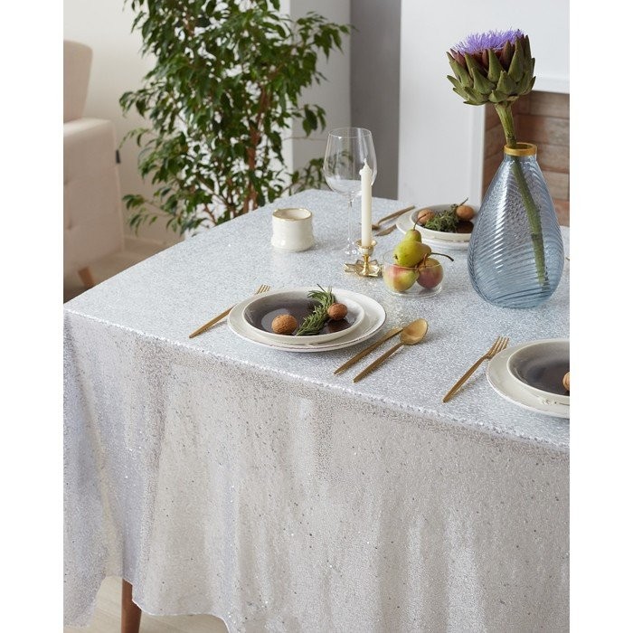 Скатерть с пайетками, цв.серебро, 300*300 см