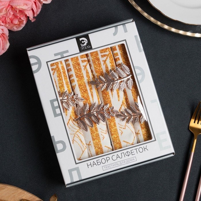 Набор салфеток с декорат. кольцами «Gold» 46х46см — 4 шт, 100% хл, саржа 190гр/м2