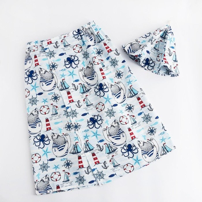 Набор для сауны Этель «Капитан» килт 75*144 см + шапка, вафля 200г/м2, 100% хл