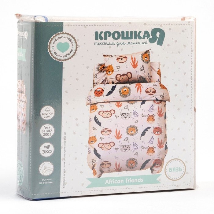Постельное бельё детское Крошка Я «African friends», 112×147 см, 60×120+20 см, 40×60 см, 100% хлопок